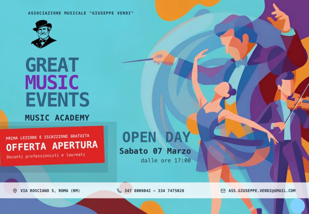 Unisciti a noi all'Associazione Musicale Giuseppe Verdi - GREAT MUSIC EVENTS SCUOLA DI MUSICA e scopri il potere trasformativo della musica nella tua vita.